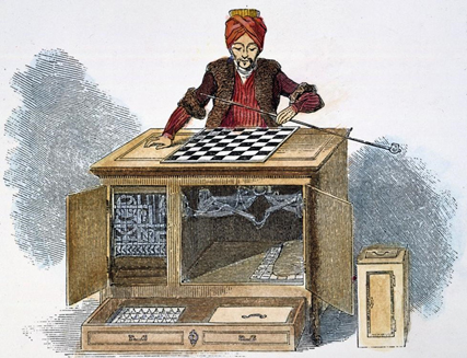 Onsekizinci yüzyılda Viyana Sarayında Wolfgang von Kempelen olarak da bilinen Slovakyalı Ján Vlk Kempelen, esas olarak üç konuda ön plana çıkmıştır: satranç oynama hüneri, Avusturya İmparatoriçesi Maria Theresa I’in danışmanı oluşu ve bir şekilde deneysel fonetiğin yolunu açan “konuşma makinesi” gibi kimi icatları ile. Ama hepsinden önemlisi, zamanın en parlak sahne mekanizmalarından biri oluşturan başka bir icadıyla ün kazanmıştır. “Türk” olarak bilinen bu icat, karmaşık bir mekanik yapıydı. Bu ilizyondaki deha, dişlilerinin teknik özelliklerinin, hareket mekanizmalarının ve iç yapısının ergonomik işleyişinin çok ötesindeydi. Daha önce hiç görülmemiş bir cihaz olan “Türk”, önce Viyana sarayını hayrete düşürdü, ardından ünü Avusturya-Macaristan imparatorluğunun sınırlarını aştı.Yerleşik bir tahtada satranç oynayabilen ve oyunun kuralları dahilinde farklı stratejiler uygulayabilen insan özelliklerine sahip bir otomatın bedensel figüründen oluşuyordu. O kadar iyiydi ki, zamanın tanınmış satranç oyuncularını yenmeyi başardı ve o dönemin kültürel bağlamında büyük bir takdir elde etti. Birçoğu için cesaret isteyen bir deneyimdi, çünkü bu gerçek, belirsizliklerle dolu bir geleceğe, şüphecilik dönemine bir kapı açtı. Yıllar sonra, pano üzerindeki parçaların hareket mekanizmalarını aktive etmek için yapının içinde saklanan bir adamın maskaralık olarak gösterilmesinin ardından bu buluş, Sanayi Devrimi’nin mekanik olarak çalışan dokuma tezgahının yaratılmasında ilham kaynağı olacaktı. Böylelikle, dişliler ve mühendislik aletlerini kullanarak dokuma yapabilen yapılar çoğaldı ve tekstil üretimi o zamanlar hayal bile edilemeyen sınırlara kadar hızlanarak genişledi Teknolojide devrim daha yeni başlıyordu ve ayakları yere güçlü bir şekilde basıyordu. Ancak bu doğrudan etkinin ötesinde, reddedilemez başka bir bulgu daha vardır: mühendislik ve mekaniğin bir insan zihnini simüle edebileceği fikri ilk kez güvenilir bir şekilde sınanmıştı ve bu fikir açıkça – ve hala da öyledir – , rahatsız ediciydi. “Türk”, insan zihnini taklit eden bir makineyi taklit eden insan zihniydi. Bir yalan olsa da, insan ile insan olmayan arasındaki melezleşme iradesinin – bu durumda insan ve makine arasında – tam bir simbiyoz (ortakyaşam) olarak ifade edildiği ilk durumlardan biri ile karşı karşıyayız. Belki de Haraway’in (1985) daha sonra Siborg Manifestosu’nda neye atıfta bulunacağına dair bir öncü fikir: “insan”, “hayvan” ve “makine” arasındaki kavramsal sınırlamaların reddedilmesi olabilir. Siborg muğlaktır: miras aldığı taksonomilerin katı ve “güvenli” sınırlarını bozarak bütünleştirir, karıştırır ve bulanıklaştırır. Tüm seviyelerde sınırların çözülmesi, sistemlerarası geçirgenlik ve birlikte çalışabilirlik çağrısında bulunur, böylece sürekli bir hibritleşme ve kronik kriz hali örer.