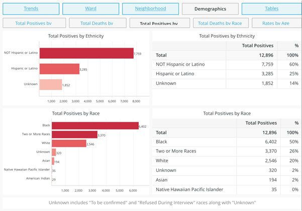 1’i beyaz ırk mensubu. George Floyd cinayetiyle ortaya çıkan Black Lives Matter hareketinin en büyük savlarından biri, siyah ırka mensup kişilerin güvensiz koşullarda çalıştığı ve güvensiz koşullarda yaşadığı idi. Bu nedenle siyah ırkın çoğunlukta olduğu mahalleler hastalığın hızla yayıldığı bölgeler oldu. Bu güvensiz koşulların yaratılması sistematik ırkçılık nedeniyle oluyor: En düşük gelirli aileler ancak bu bölgelerden ev tutabiliyor, bu mahallelerde genellikle daha kalabalık okullar var ve devlet yardımını daha az alıyorlar. Eğitimin kalitesi düştüğünden, bu mahallelerde yaşayan kişiler daha az eğitimli oluyor ve daha vasıfsız işlere yöneliyorlar ve daha az para kazanıyorlar. Sonuç bir kısır döngü.