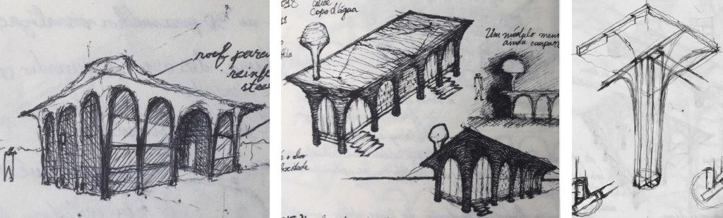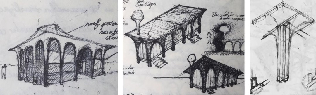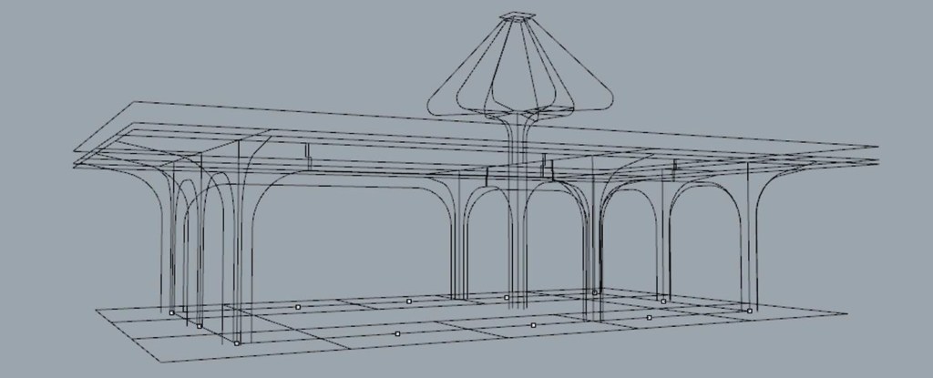Doktora araştırması kapsamında yürütülen mimari tasarımın fiili deney aşaması, yukarıda değinilen kavram ve örneklerden beslendi. Biri beton diğeri çelik olan iki farklı tipte strüktürün serbest el çizimleri ile etüd edilmesinin ardından (Şekil 01, 02), noktadan-noktaya 3 boyutlu bir model oluşturuldu (Şekil 03) ve Rhinoceros® yazılımının yardımıyla iki farklı strüktürün performansları karşılaştırıldı. Karşılaştırma sonucunda, dijital fabrikasyon kullanımı bağlamında çelik yapı konstrüksiyonu betona kıyasla sürdürülebilir avantajlar sundu. Bu nedenle, tercih çelik strüktür yönünde kullanıldı.